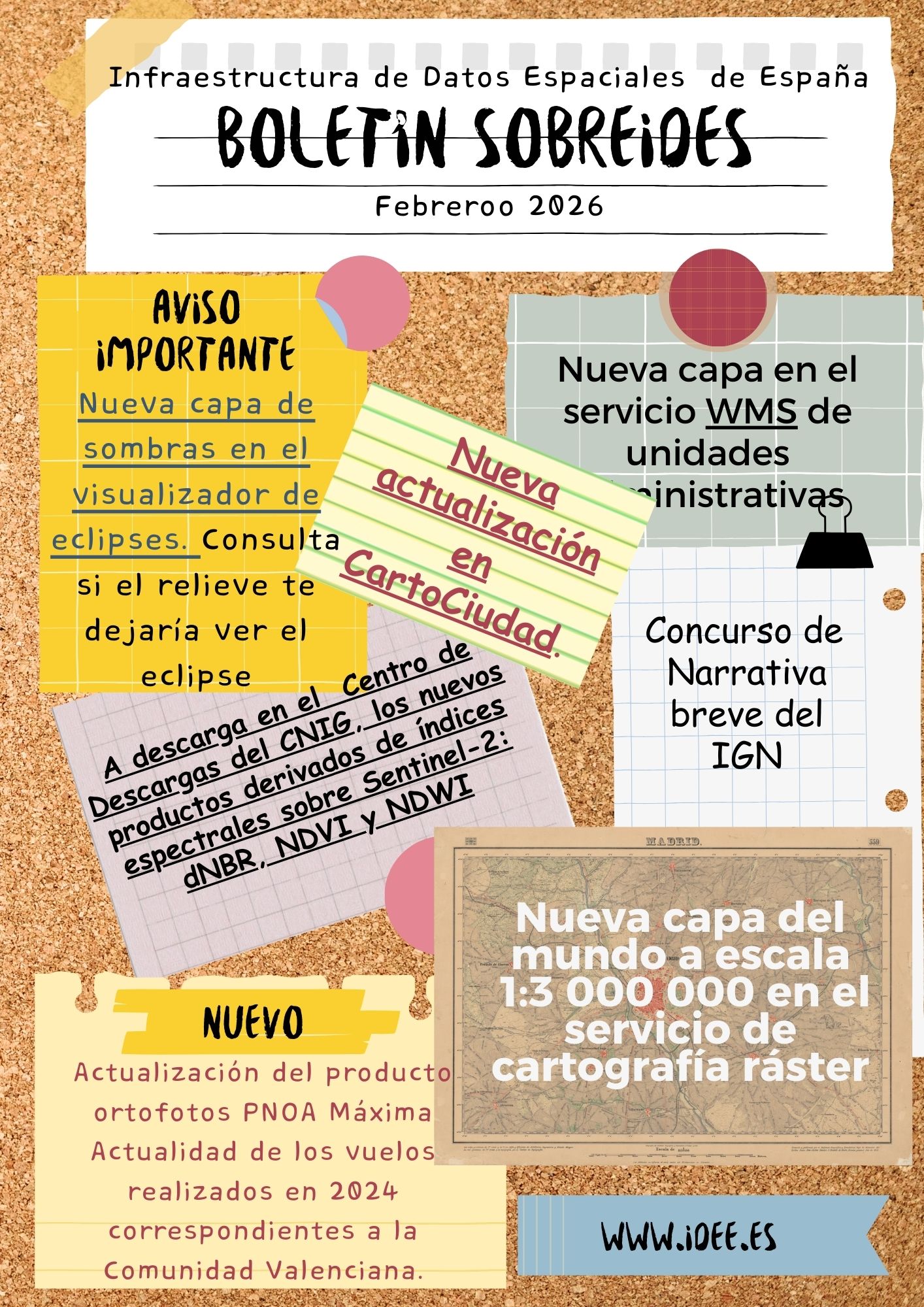 Nuevo diseño y contenidos actualizados del geoportal de la Infraestructura de Datos Espaciales de España, IDEE www.idee.es. Esperamos que este nuevo geoportal le permita utilizar la información geográfica de una forma más eficiente y le acerque a las Infraestructuras de Datos Espaciales. Cualquier duda o sugerencia no dude en contactar con nosotros en: