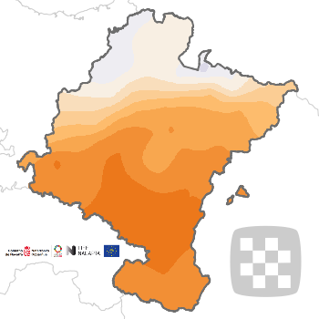 Datos por periodos climáticos de treinta años para el indicador o variable denominada “días de verano”, que refiere al número de días en los que la temperatura máxima es superior a 25°C. Se muestra el dato medio del periodo a partir de datos proyectados para el periodo 2021-2050. Este trabajo ha sido financiado con el Proyecto Europeo LIFE-IP NAdapta-CC.