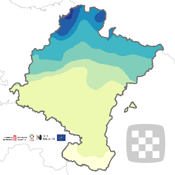 Datos por periodos climáticos de 30 años de precipitación total anual en milímetros. Se muestra el dato medio del periodo a partir de rejillas de datos observacionales para el periodo 1961-1990. Este trabajo ha sido financiado con el Proyecto Europeo LIFE-IP NAdapta-CC.